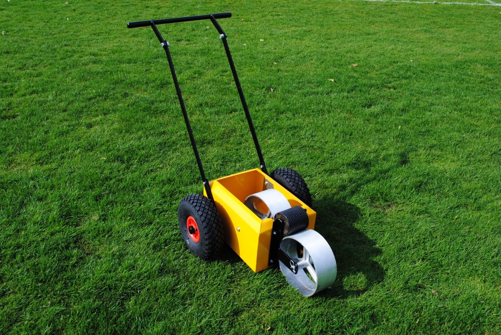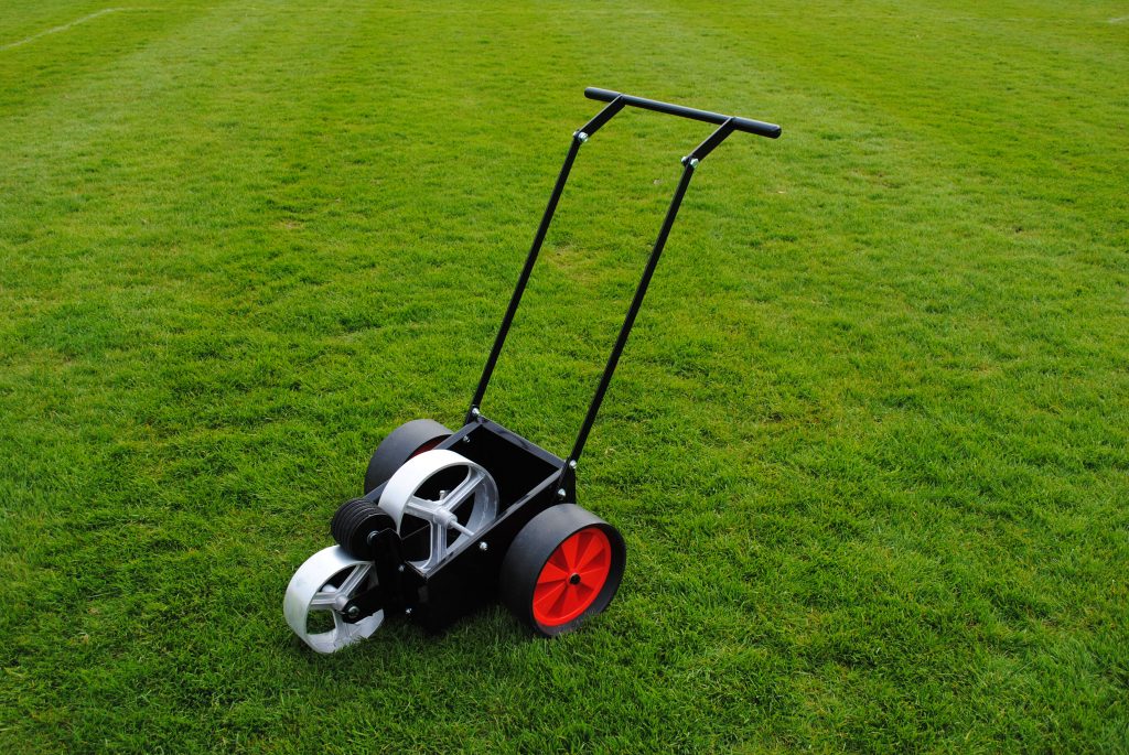 Our newest range of line markers can be found below. All are built with durable cast aluminium marking and tank transfer wheels, which produce a precision pick up of paint from tank to pitch, as well as height adjustable handles and easy to clean tank and transfer wheel. They can be used with either ready to use or concentrated paint, are available with either solid or pneumatic tyres, and are made by us in the UK.