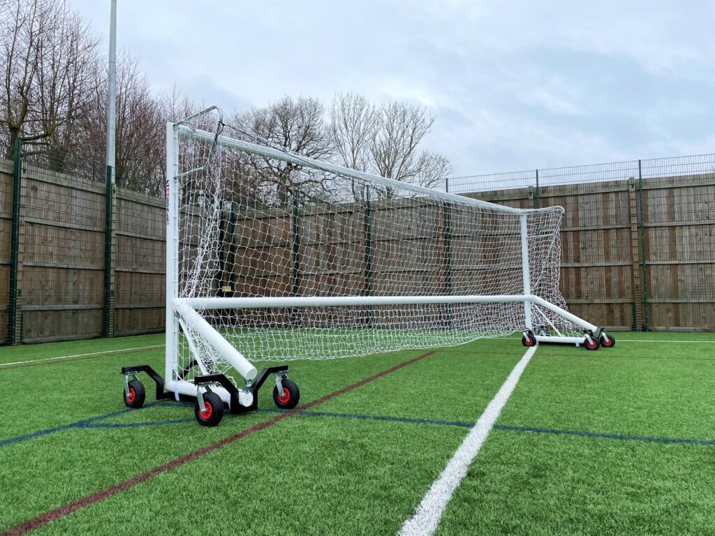 This light weight training goal is ideal for pre match training. It comes with folding box net back rails for easy erection and 4 trollies to quickly move the goal into position