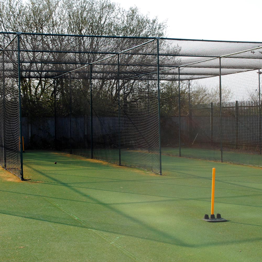 - Has 2mm 50mm square knotted black netting and roof for batting end