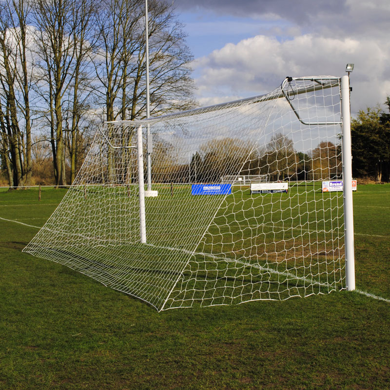 - White polyethylene 6.40 x 2.13m (21 x 7ft) 3mm football goal nets